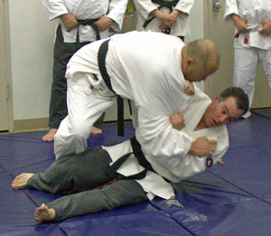 Please be aware that the first 2-4 weeks of your class may be challenging as you are learning many new things. Please be patient with yourself. The class is not physically difficult. It's important that you believe you will succeed -- because you will. Everyone in the class wants you to succeed. Around weeks 5-6 you will see more success as many of the techniques start to work better. By the end of your first 8-10 week session you will also have a judo gi [now you look like a real jujitsuka] and you will have joined the American Ju-Jitsu Association [annual calendar-year fee of $20 for AJA membership], which makes it possible for you to receive promotions, wear the AJA emblem on your gi, and wear your promotional obi [colored belt] in class!
