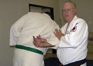 This armlock is ideal to use on a larger person or if you have small hands. It's an excellent alternative to the wrist press armlock & is now used by a number of major law-enforcement agencies. Once set you have a great deal of control over the person & it can be quite painful - so use caution! This technique is shown as a reaction to a right hit. It could be used for a variety of other techniques as well. Your initial response might have to be different, depending upon the attack or situation. It can be used from a desensitizing "come with me" hold [law-enforcement: low level of force] all the way to an overhead knife or club attack or high knife slash. Thanks to Marc Kolodziejczyk, for being my uke and Sensei Marc Tucker for the photography.
