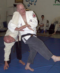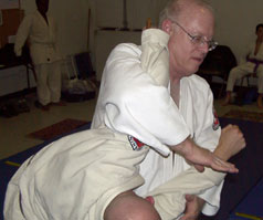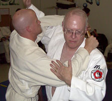 This is a defense for a knife in your back, with your back arched. Practice this defense slowly to achieve smoothness. It is an extremely fast technique once proficiency is achieved because your constantly working in a circle. Be careful though. You can't complete this technique without posing the risk of serious injury to your workout partner. Be sure to check my footwork as you learn this technique. Footwork is always critical. Thanks to Sean Gallimore for being my uke and Marc Kolodziejczyk for the photography.