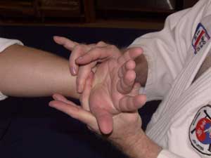 hands on the inside of the uke's wrist. While you may feel that you have a